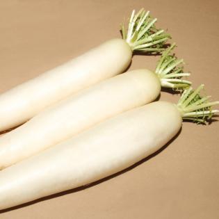 Root is pure white without green shoulder, uniform, cylindrical shape with narrowed end;